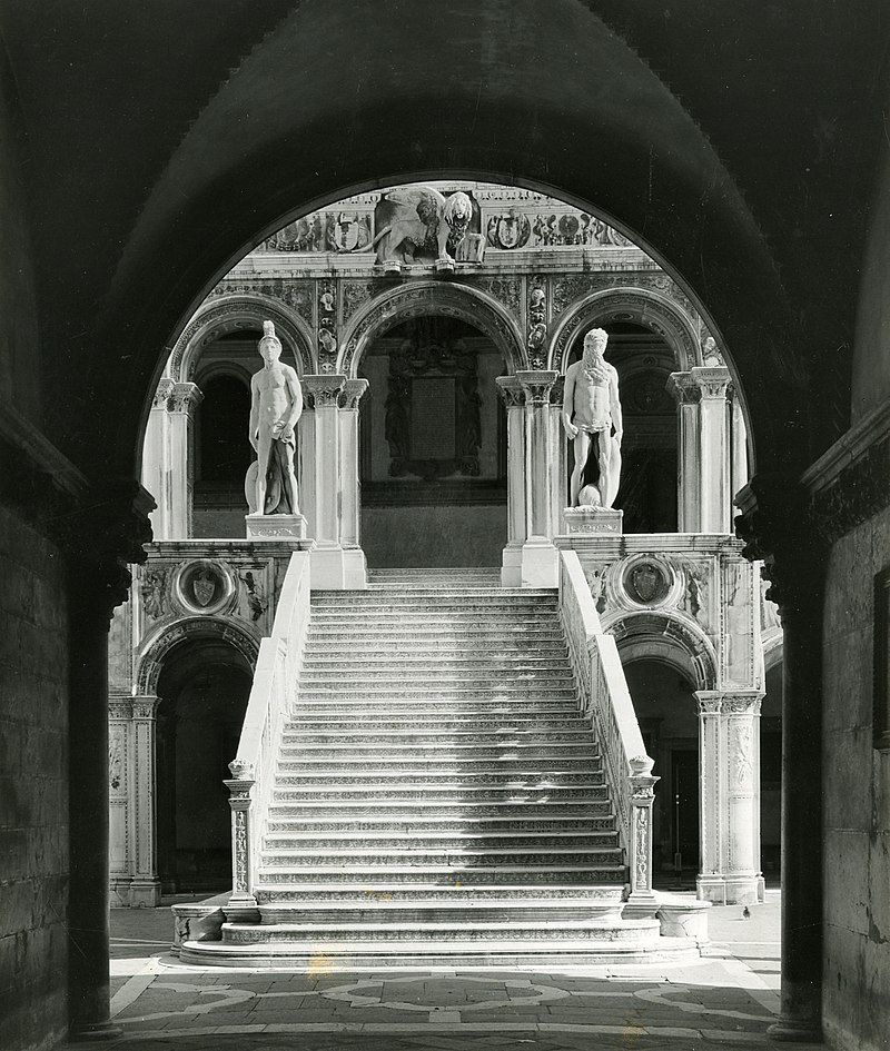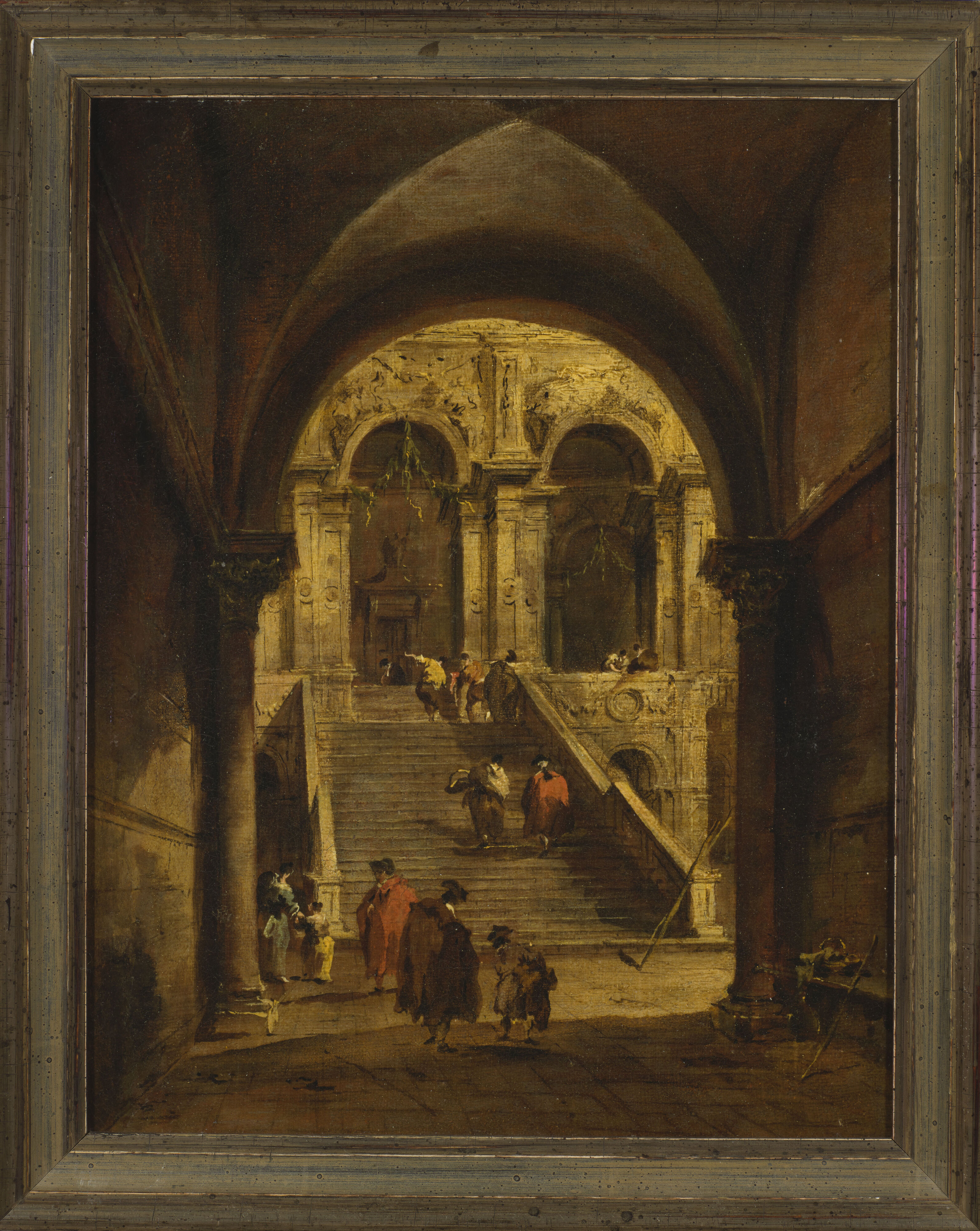 Francesco Guardi w kilku rysunkach i obrazach ukazał Schody Gigantów na dziedzińcu Pałacu Dożów. Schody te prowadzą na pierwsze piętro pałacu, do jego najbardziej reprezentacyjnych pomieszczeń. Zostały wybudowane przez Antonio Rizzo w 1491 roku i ozdobione posągami Marsa i Neptuna w połowie XVI wieku. Były świadkami największych uroczystości Serenissimej. To tymi schodami przemieszczał się doża wraz z orszakiem podczas licznych, uroczyście celebrowanych w Wenecji ceremonii.