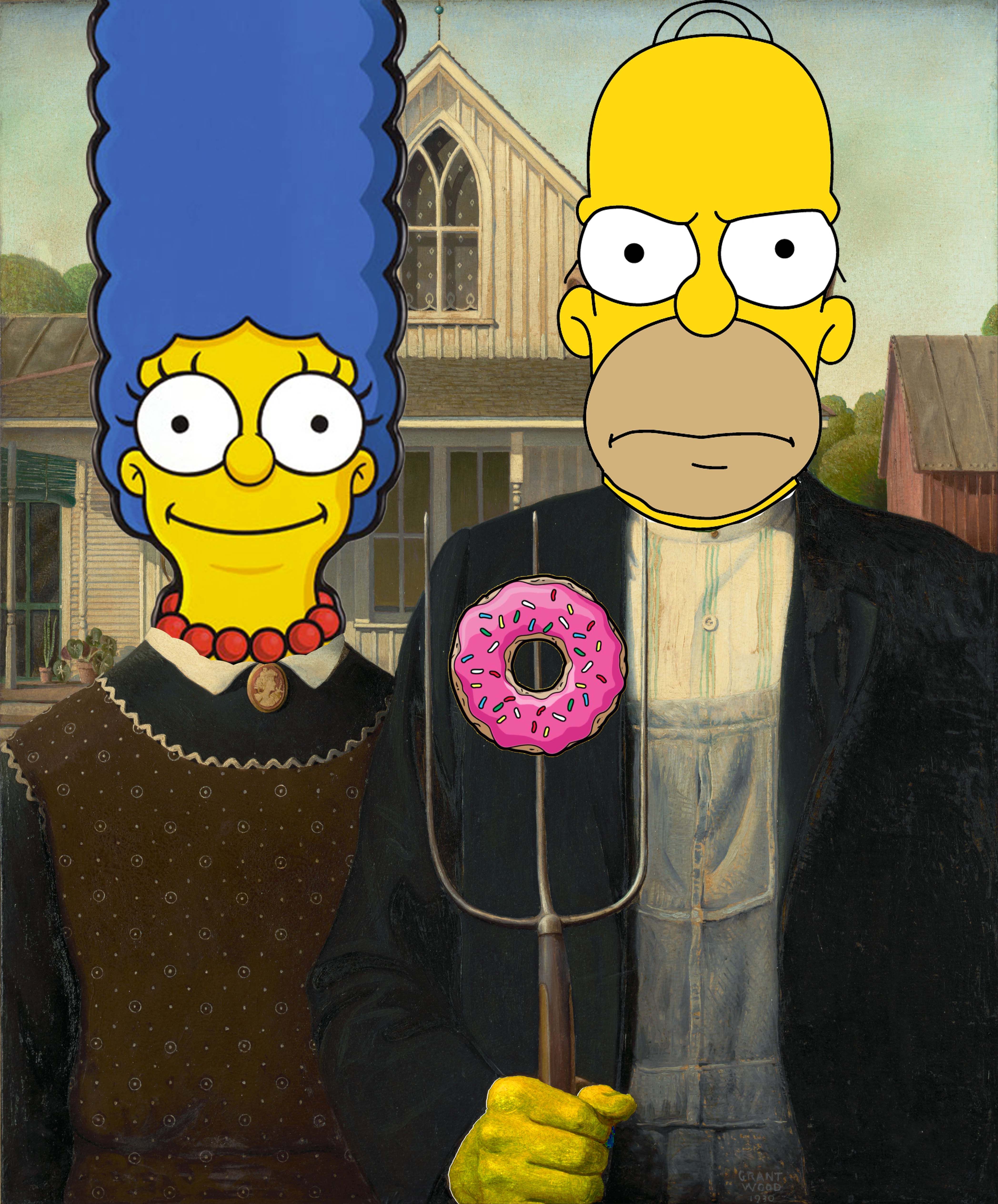 "American Gothic" Granta Wooda uzyskał status ikony XX wieku, ale jego sława nie jest jednoznaczna. Nazywany bywa komiczną walentynką, a masowa kultura w licznych trawestacjach zamienia modeli z obrazu na coraz to inne postaci. Każda amerykańska para prezydencka jest upozowana na bohaterów Wooda (Melania Trump ma jednak zdecydowanie niepurtytański dekolt). Twarze idealnych farmerów z Iowa są też zastępowane fotografiami słynnych celebrytów, takich jak Angelina Jolie i Brad Pitt, czy postaci fikcyjnych - Wilmy i Freda Flinstonów, Kermita i Piggy czy Simpsonów. Mogą też mieć rysy każdego użytkownika internetu sprawnie posługującego się programami graficznymi.