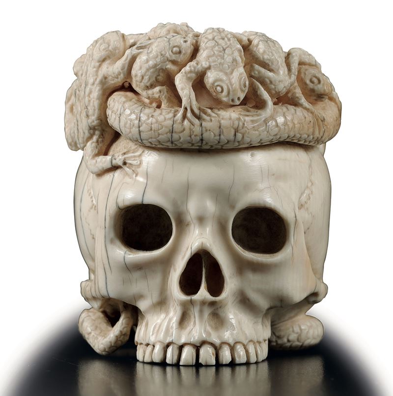 Luksusowe, a zarazem makabryczne różańce, a także niewielkie trumienki z ludzkimi zwłokami popularne były jeszcze w XVII i XVIII wieku, podobnie jak wisiorki i niewielkie statuetki z podwójnym obliczem. Z jednej strony przedstawiały żyjącą osobę, a z drugiej jej „pośmiertny” wizerunek, sugerując nieuchronne przejście pomiędzy życiem a śmiercią.
